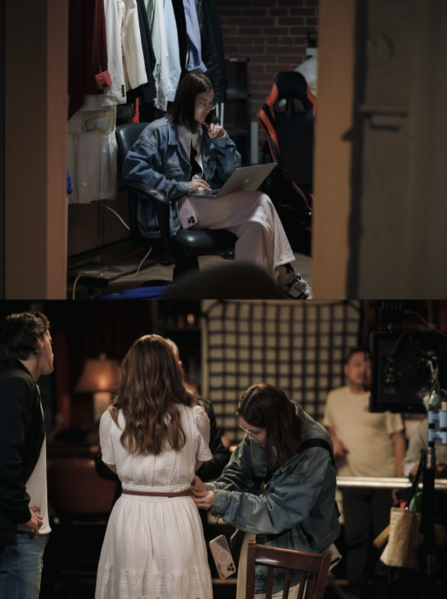 方案在fitting阶段得到验证,每套造型拍照存档、对应场次标注,作为拍摄期间连戏的依据。进入拍摄,俞漪汶全程跟组,在每个镜头开拍前完成最后的服装确认,处理突发状况。短剧的拍摄节奏极为压缩,任何偏差都需要即时解决。拍摄完成后,所有租借服装逐件整理归还,为可能的补拍留好余地。